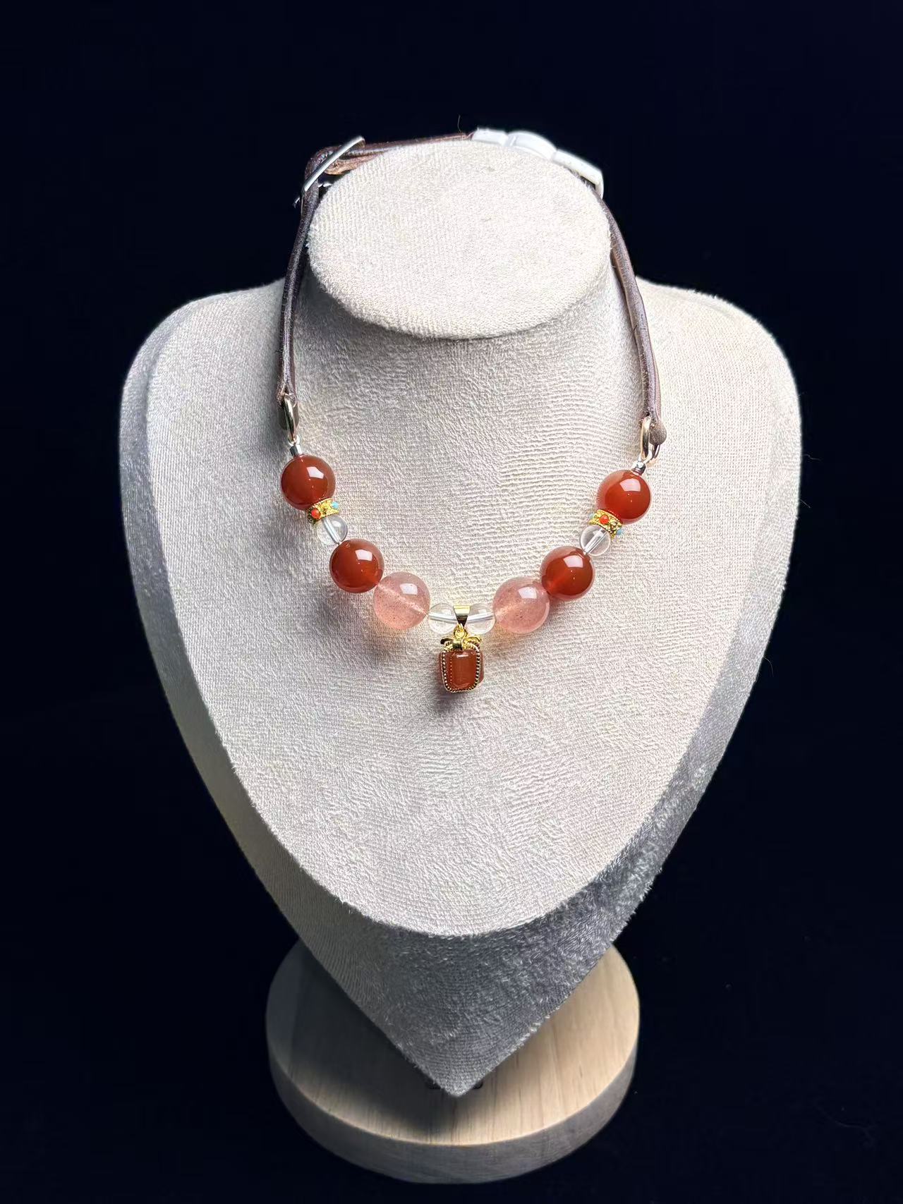 Clear Quartz keeps the look clean, balanced, and bright on camera, while Red Agate adds warm stability to the sweet blush tones.